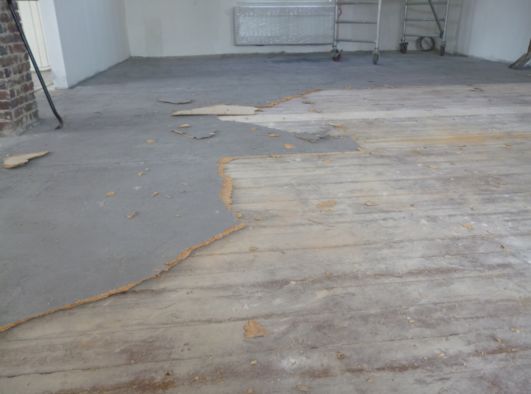Wir haben unter dem alten Fussboden schöne alte Dielen entdeckt, ein richtiger Schatz, der hier zum Vorschein kam. Nachdem der alte Bodenbelag komplett entfernt wurde, können die Dielen jetzt neu abgeschliffen und versiegelt werden und man sieht jetzt schon, es lohnt sich altes im neuen Glanz erstrahlen zu lassen.