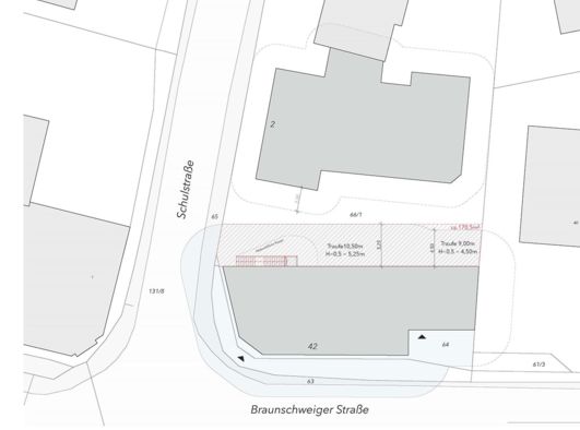 Vor dem einreichen des Bauantrags ist die Abstandsfläche mit dem Nachbarn zu klären (Grenzbebauung). Die Fläche brauchen wir für einen Rettungsweg.